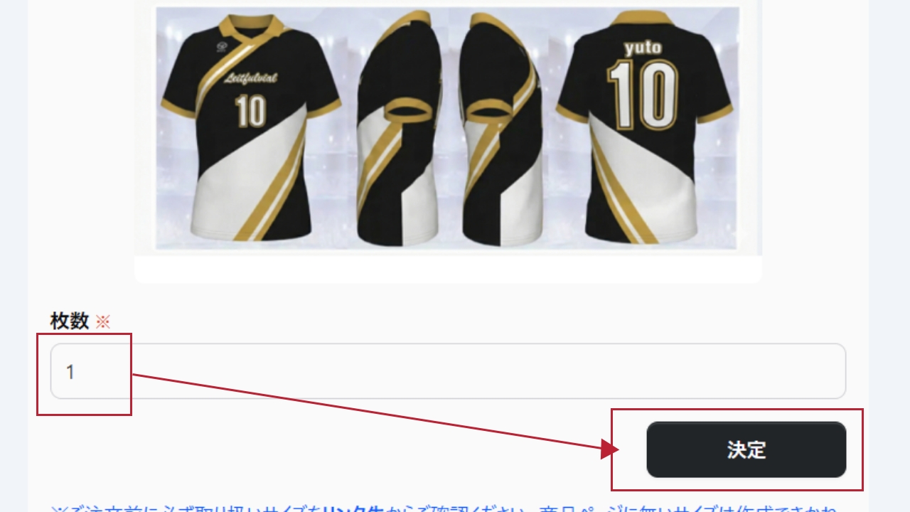③注文内容入力フォームが表示されます。注文したい枚数を入力し「決定」を押してください。