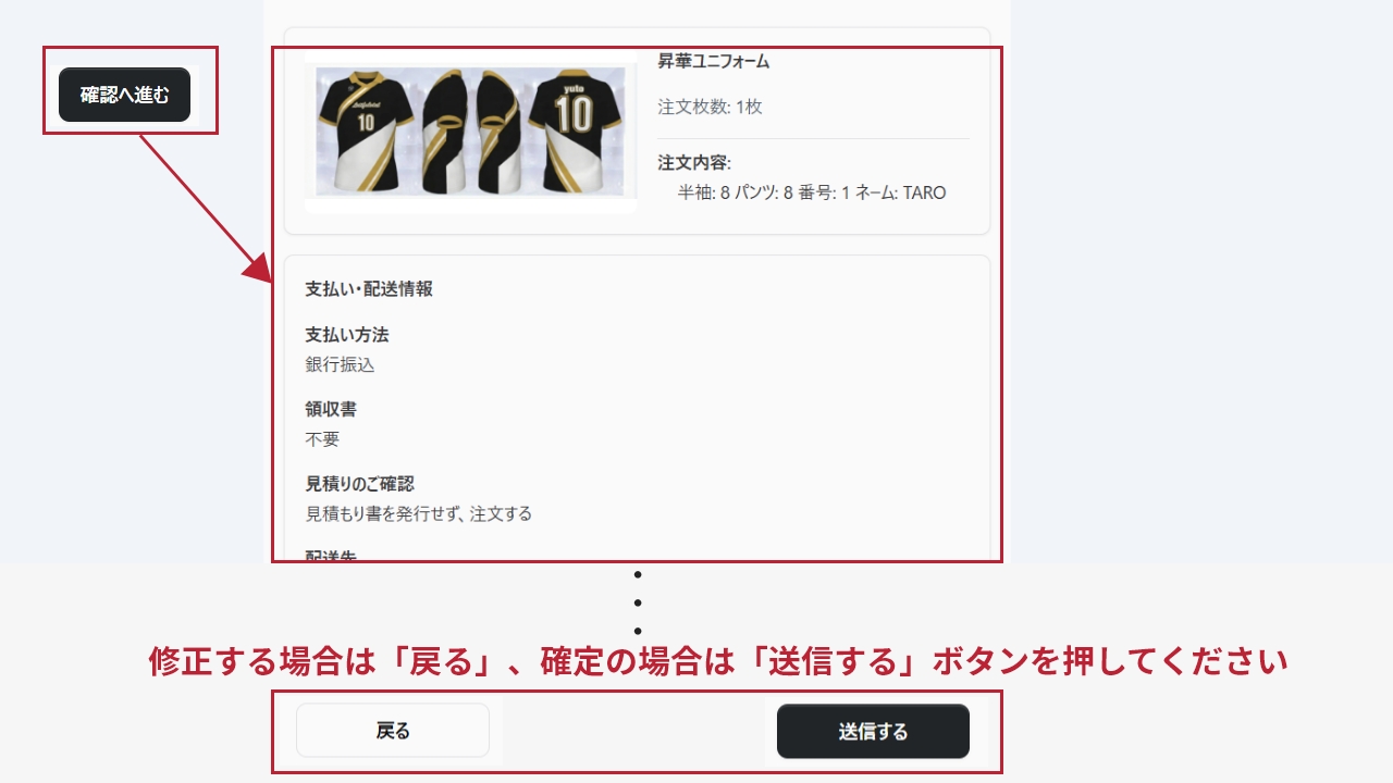 修正する場合は「戻る」、確定の場合は「送信する」ボタンを押してください。
